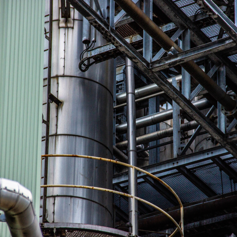 - Platforms & safety: FRP grating, stairs, handrail; machine guards and sight panels